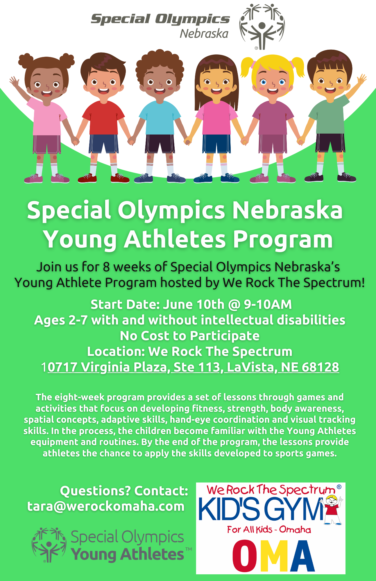 Join us for an 8-week Young Athletes Camp! For children ages 2-7, free to all participants. Each week Young Athletes will focus on different skills based around the Young Athletes curriculum. See attached flyer.